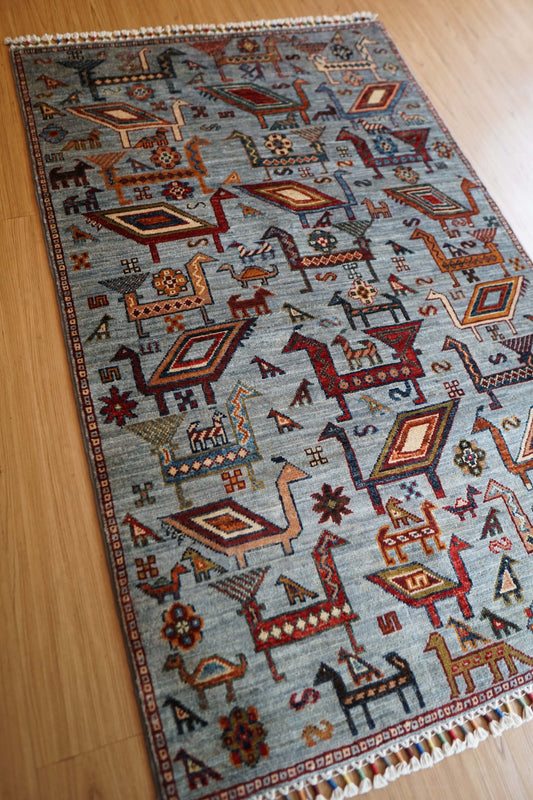 南イランの遊牧民によって織られるギャッベは、素朴で温かみのあるデザインが特徴。天然ウールと植物染料を使い、現代の暮らしにもなじむ手織りラグです。