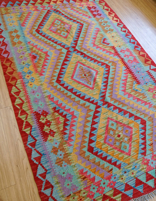 アフガニスタン 手織りマシュワニキリム 160×108cmファインクオリティ 緻密織りトライバルラグ