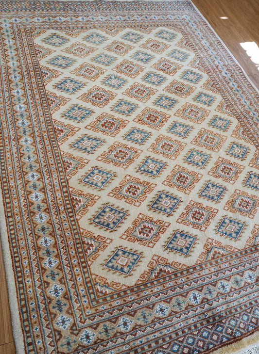 手織りパキスタン絨毯 184×128cm|9/16クオリティ・ベージュ×ブルー