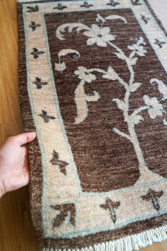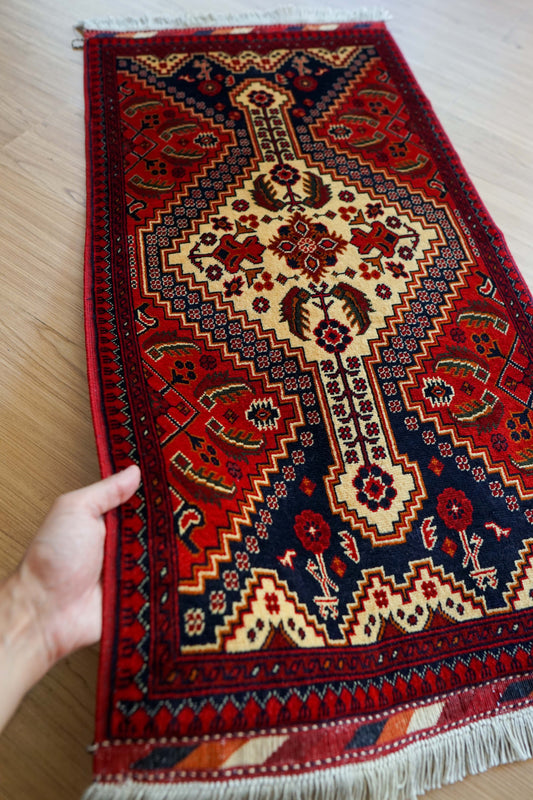 アフガニスタン手織り絨毯 カールモハメディ 105×52cm|高密度織り・上質ウール トライバルラグ