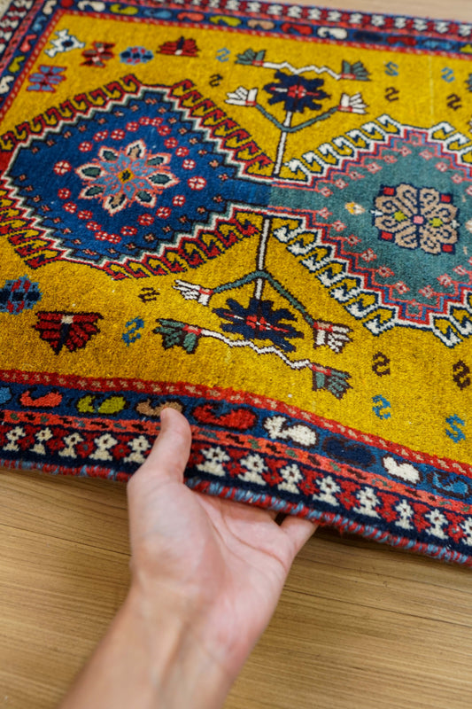 90x64cm 手織り ペルシャ絨毯 カシュカイ族