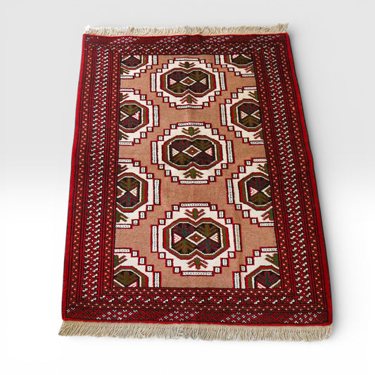パキスタン手織り絨毯 トルクメンボハラ トライバルラグ 130×80cm
