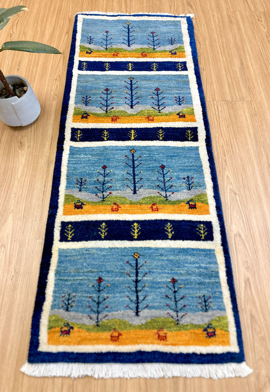 ペルシャ手織りカシュクリギャッベ リズ バフト ギャベ 手織り絨毯 114×44cm