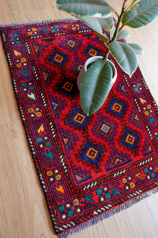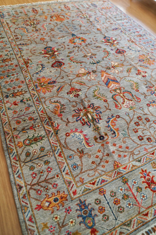 アフガニスタンの伝統を受け継ぐアフガンラグは、深みのある色合いと幾何学的な模様が魅力。丈夫なガズニーウールを使用し、力強い個性を空間に与えます。