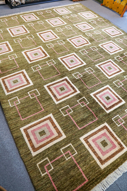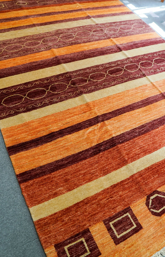 パキスタン手織りギャッベ 303×223cm 高密度ノット仕上げ モダンデザイン ウールラグ