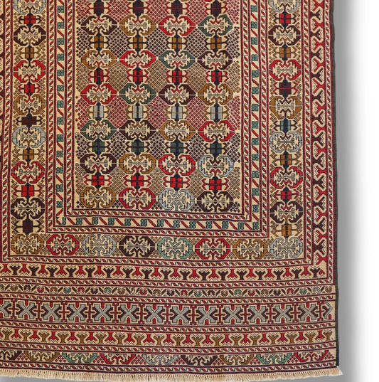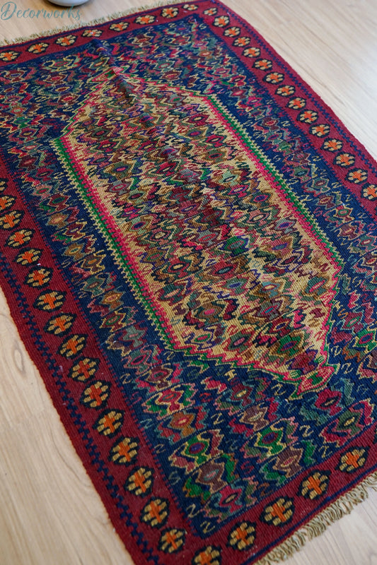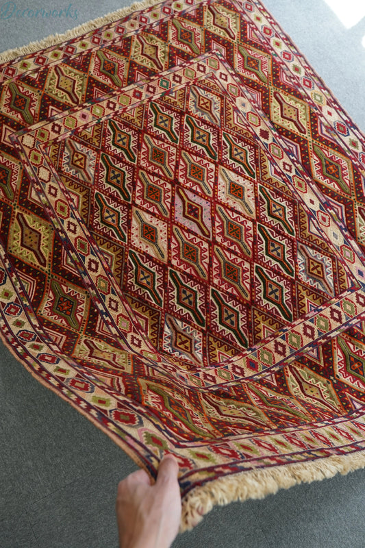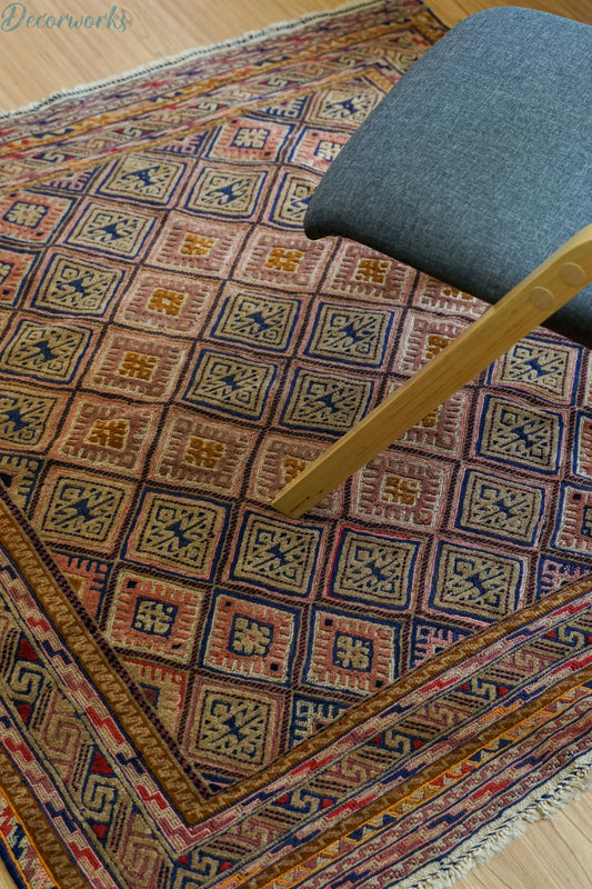 Decorworksでは、トルコやイランなどの産地から厳選した本物の手織りキリムを直輸入。すべて一点物のため、インテリアに個性と深みを与えるアイテムとして人気です。全国送料無料、安心サポート付きでお届けいたします。