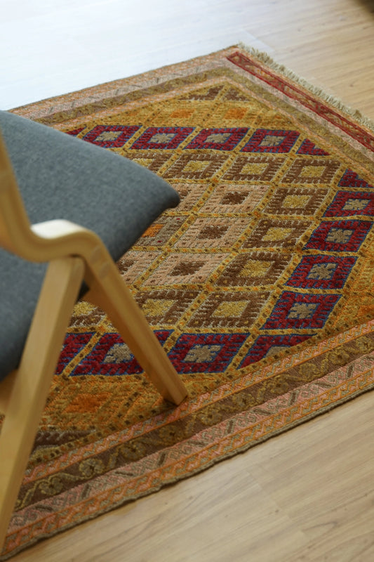 アフガニスタン製 手織りマシュワニキリム 137×106cm,Decorworks厳選