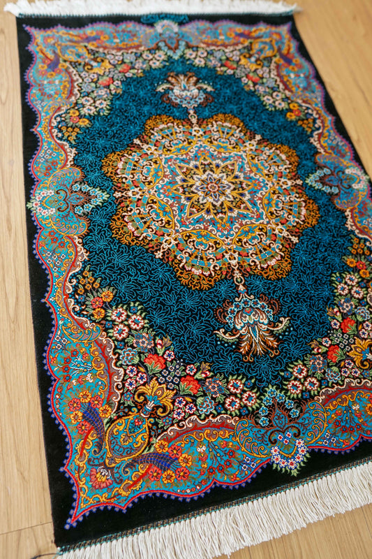 ペルシャ絨毯 クム産 モスサビ房 シルク 89×56cm