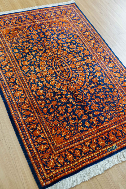 ペルシャ絨毯クム産 ムサヴィ工房 シルク 証明書付 87×58cm