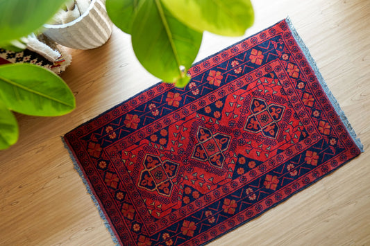 121×83cm アフガニスタン手織り絨毯 カールモハメディ