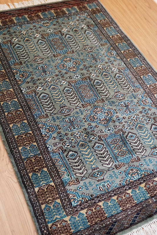 パキスタン手織り絨毯 88×62cm、ジャールダールデザインの伝統模様ラグ