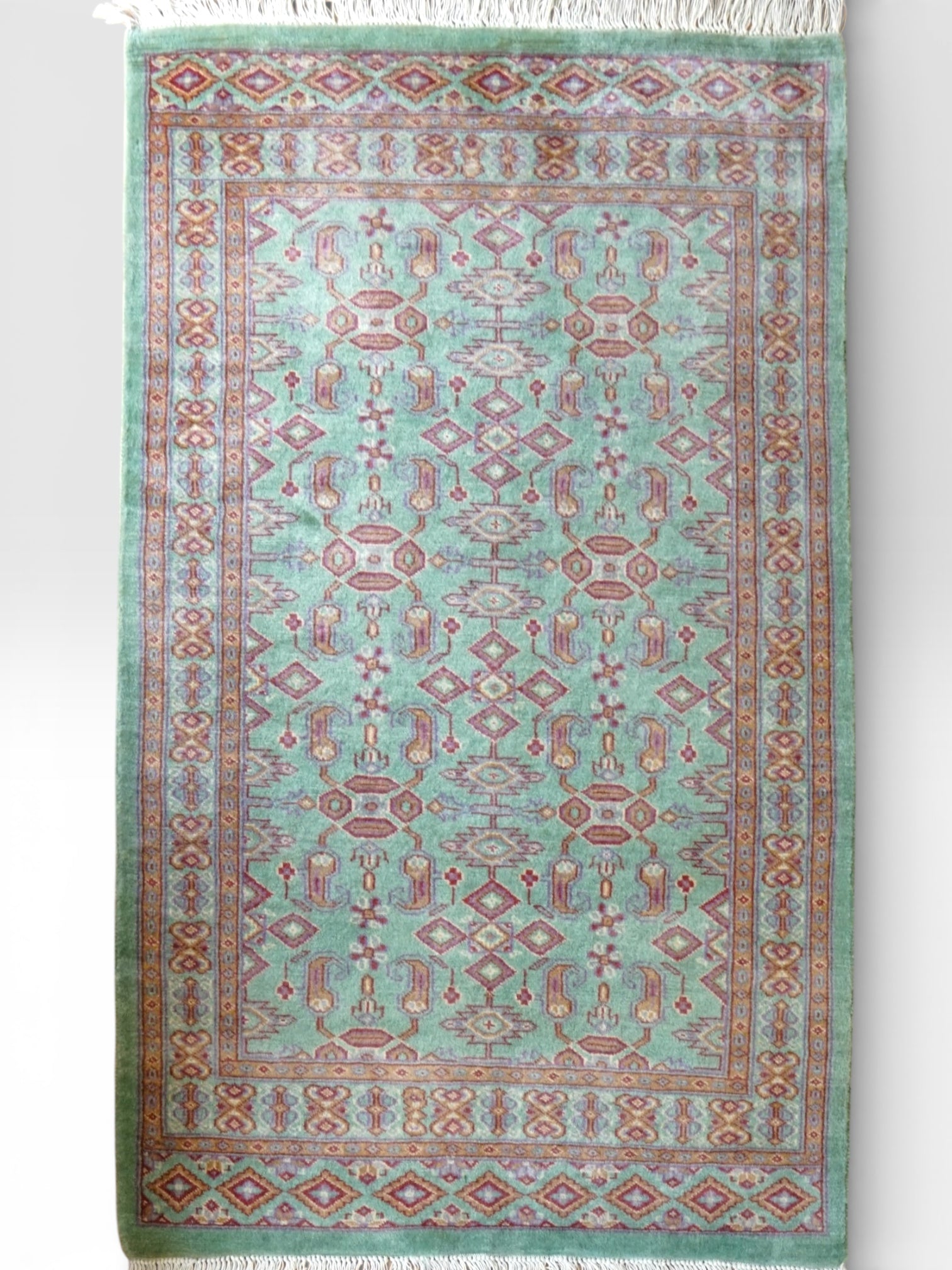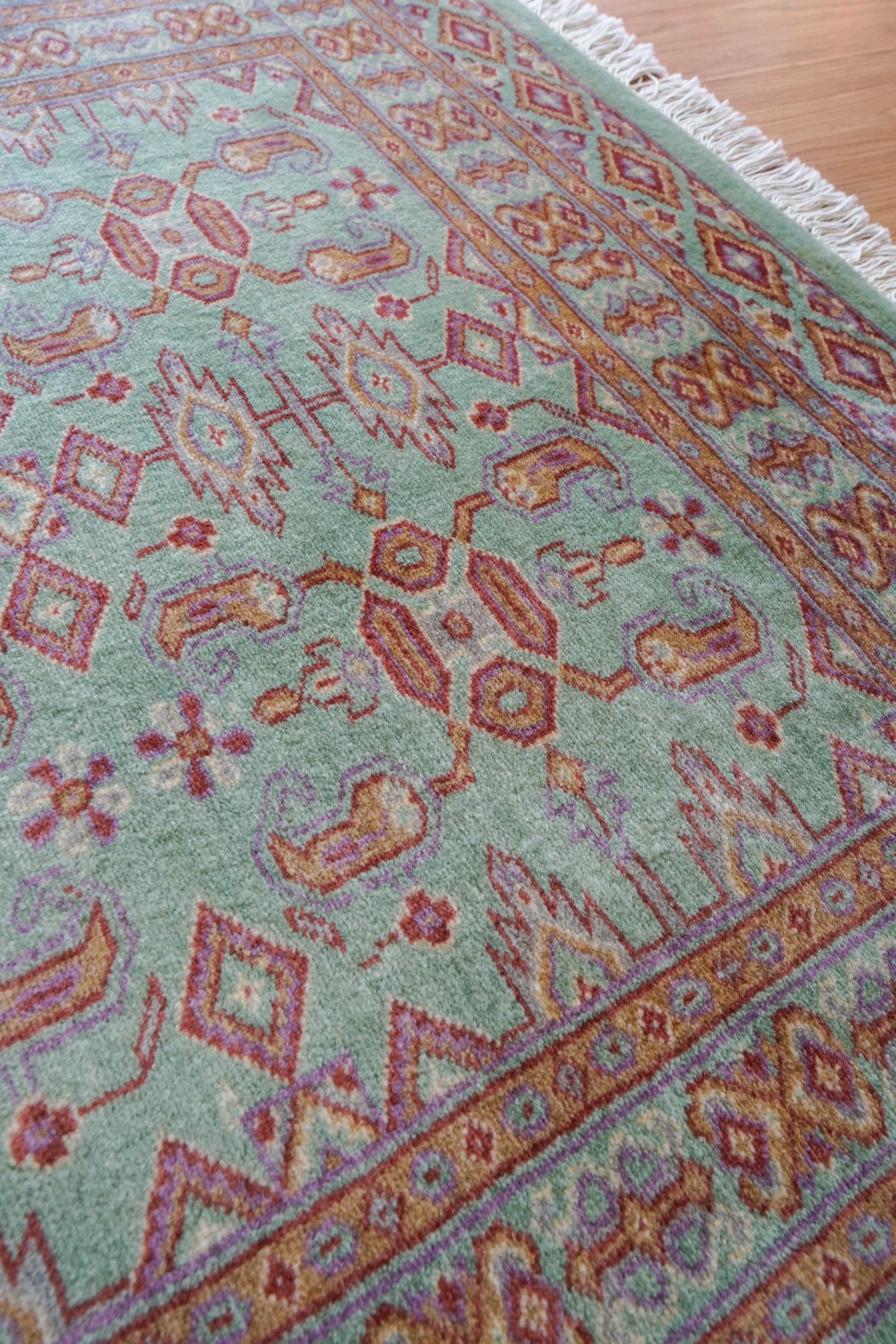 ニュージーランド産の上質な メリノウールに草木染めを施し、職人が手織りしたパキスタン絨毯です。
