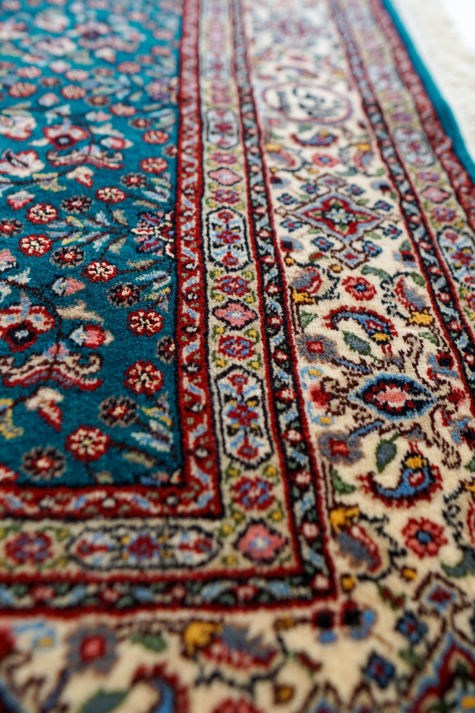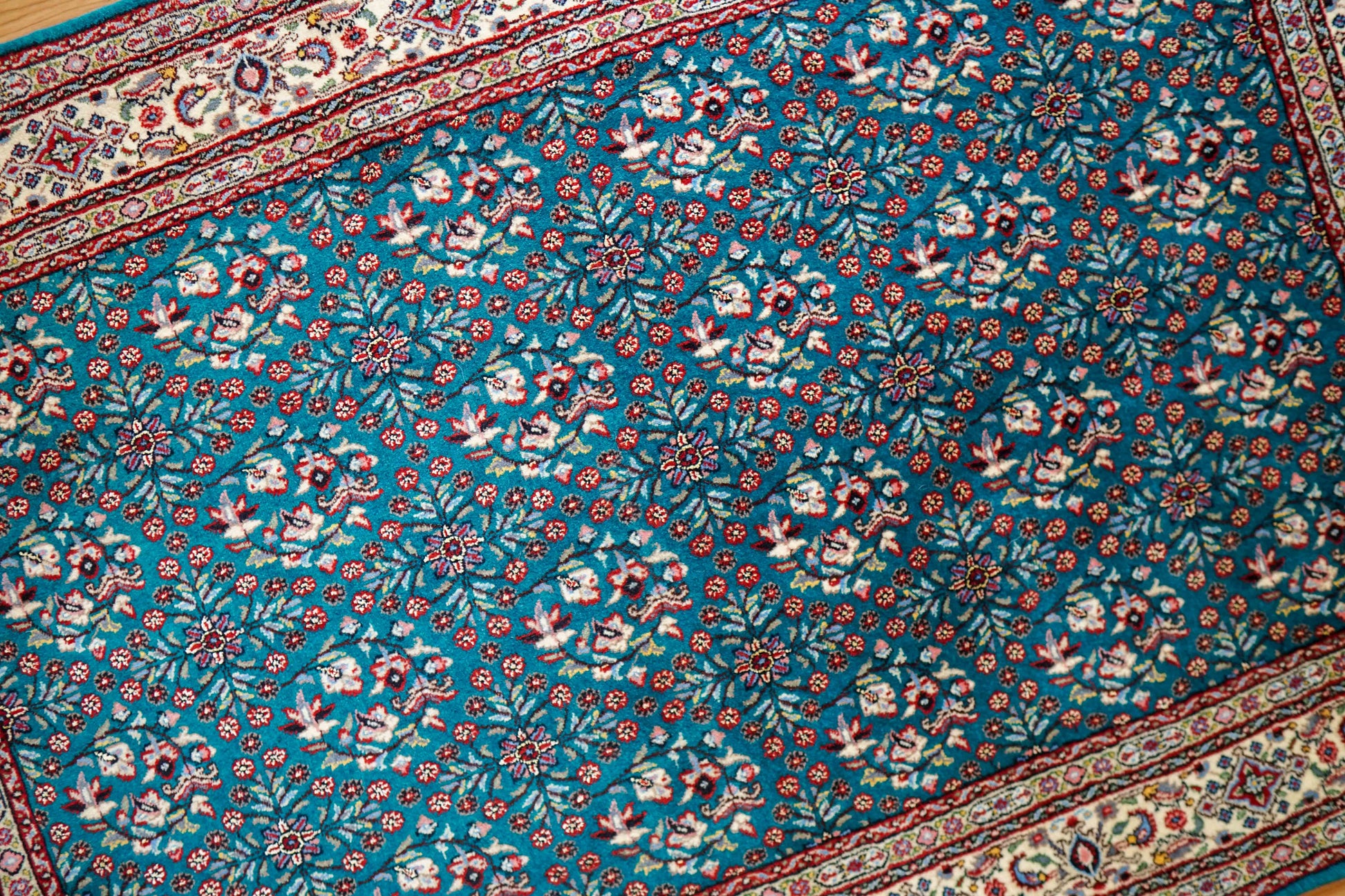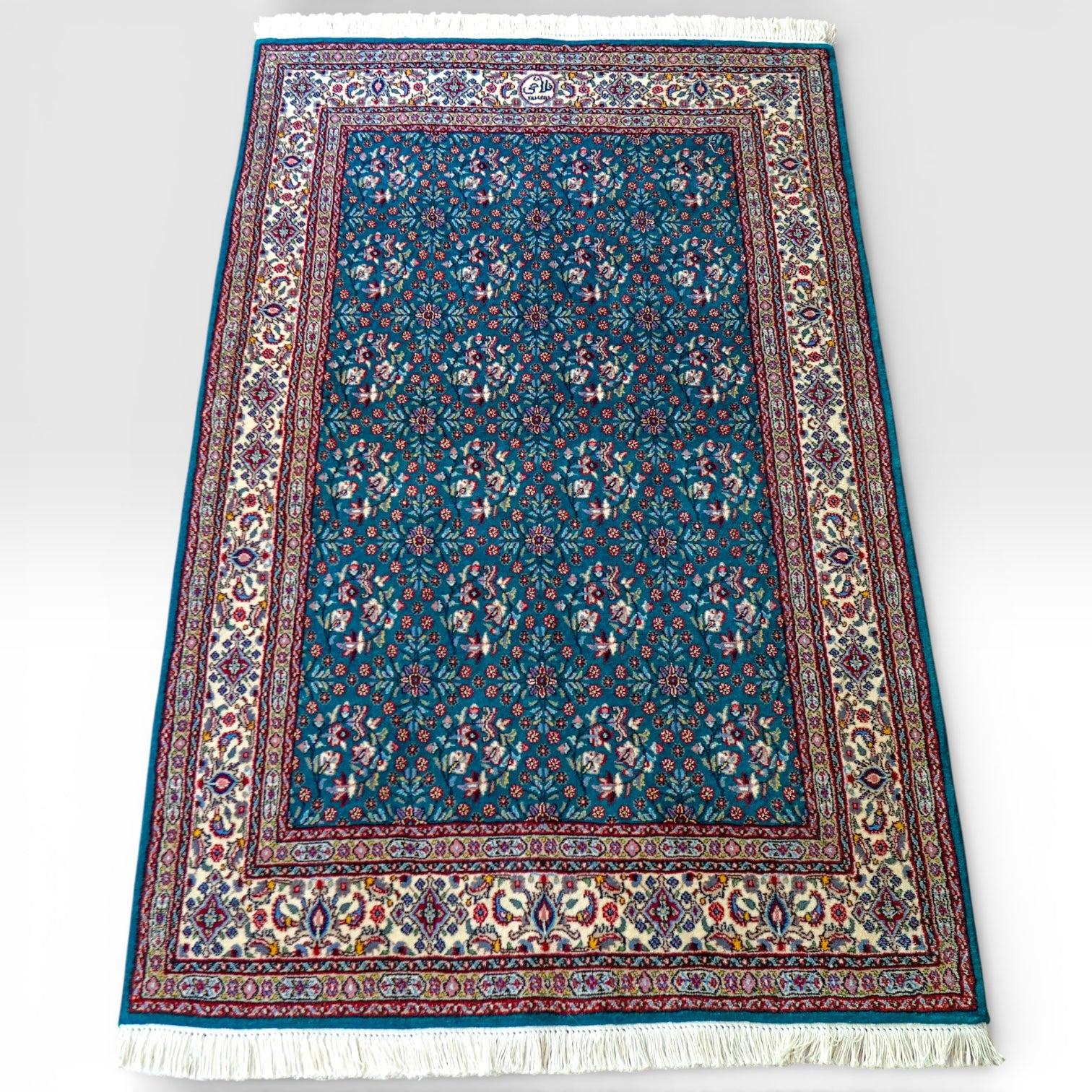 上質なウールを使用したペルシャムード産の手織り絨毯。ムードはペルシャ絨毯の歴史が長く、何世紀にもわたりその伝統を継承しています。