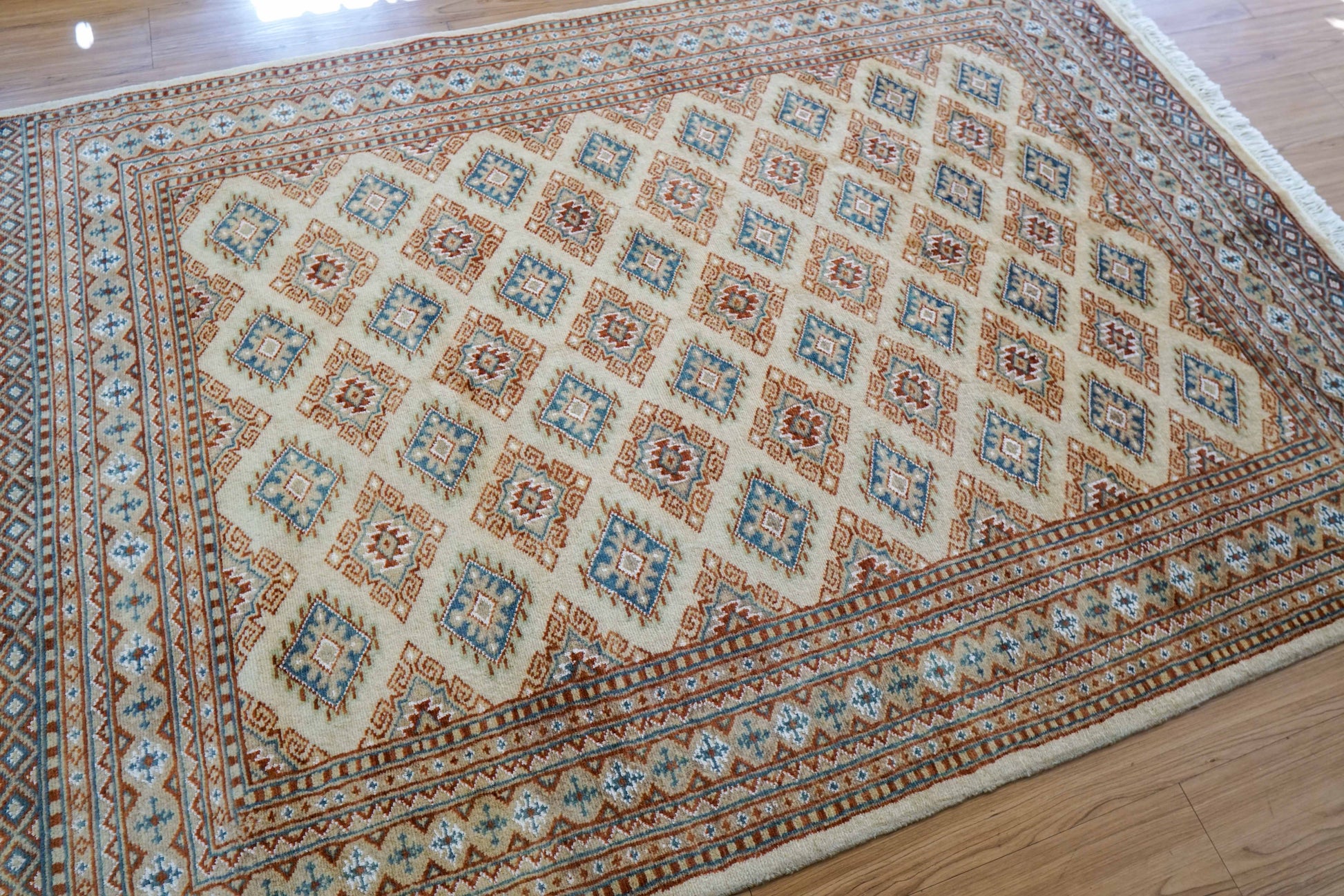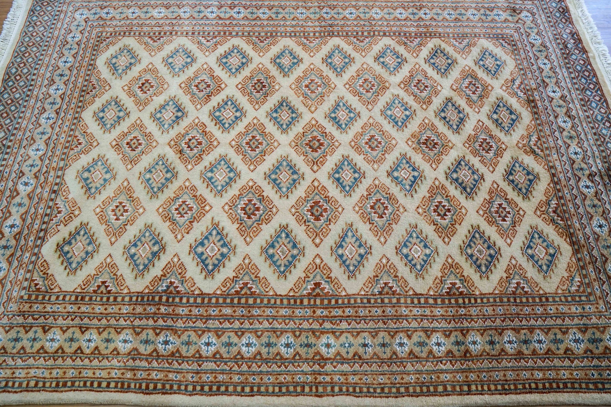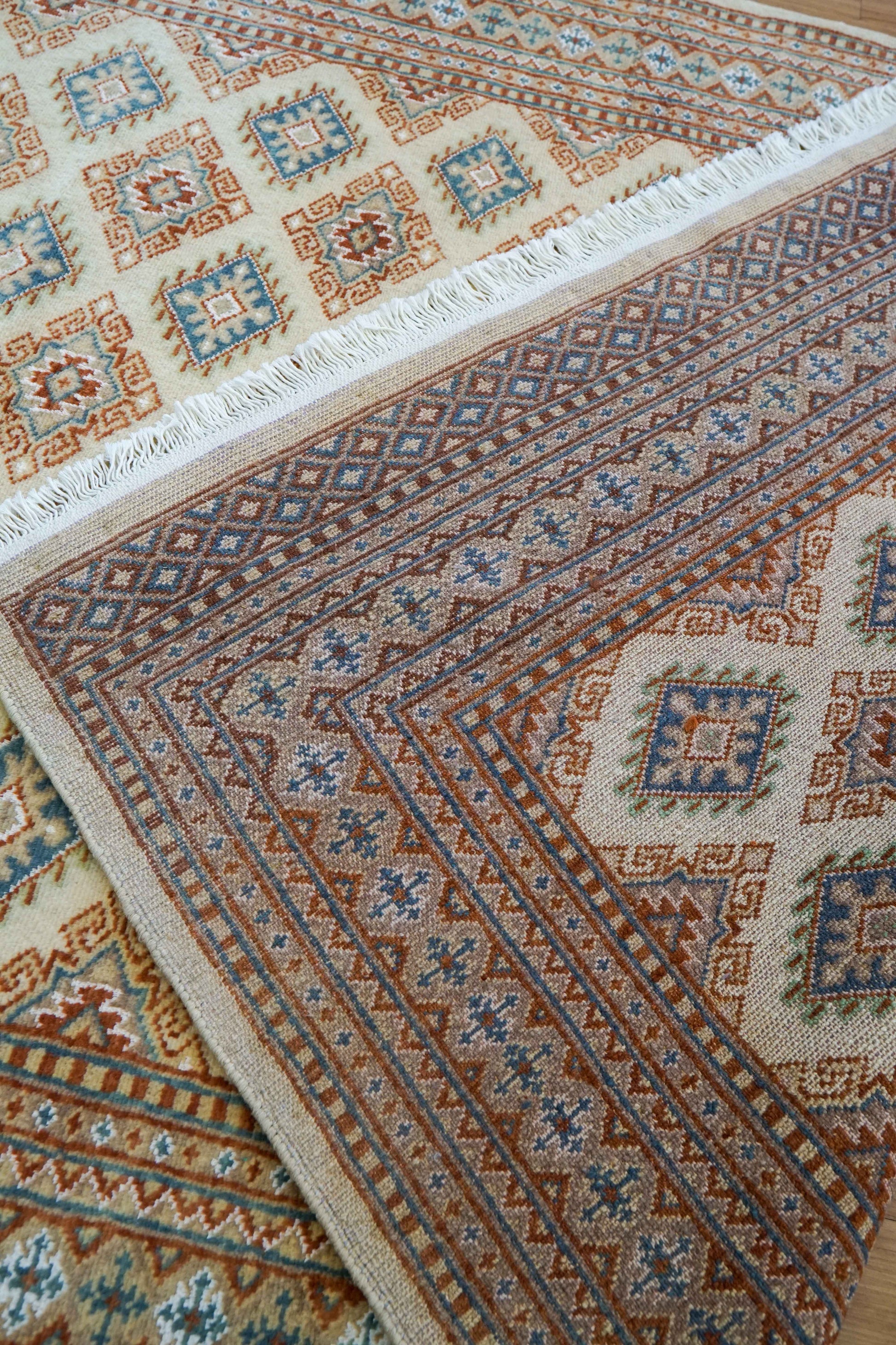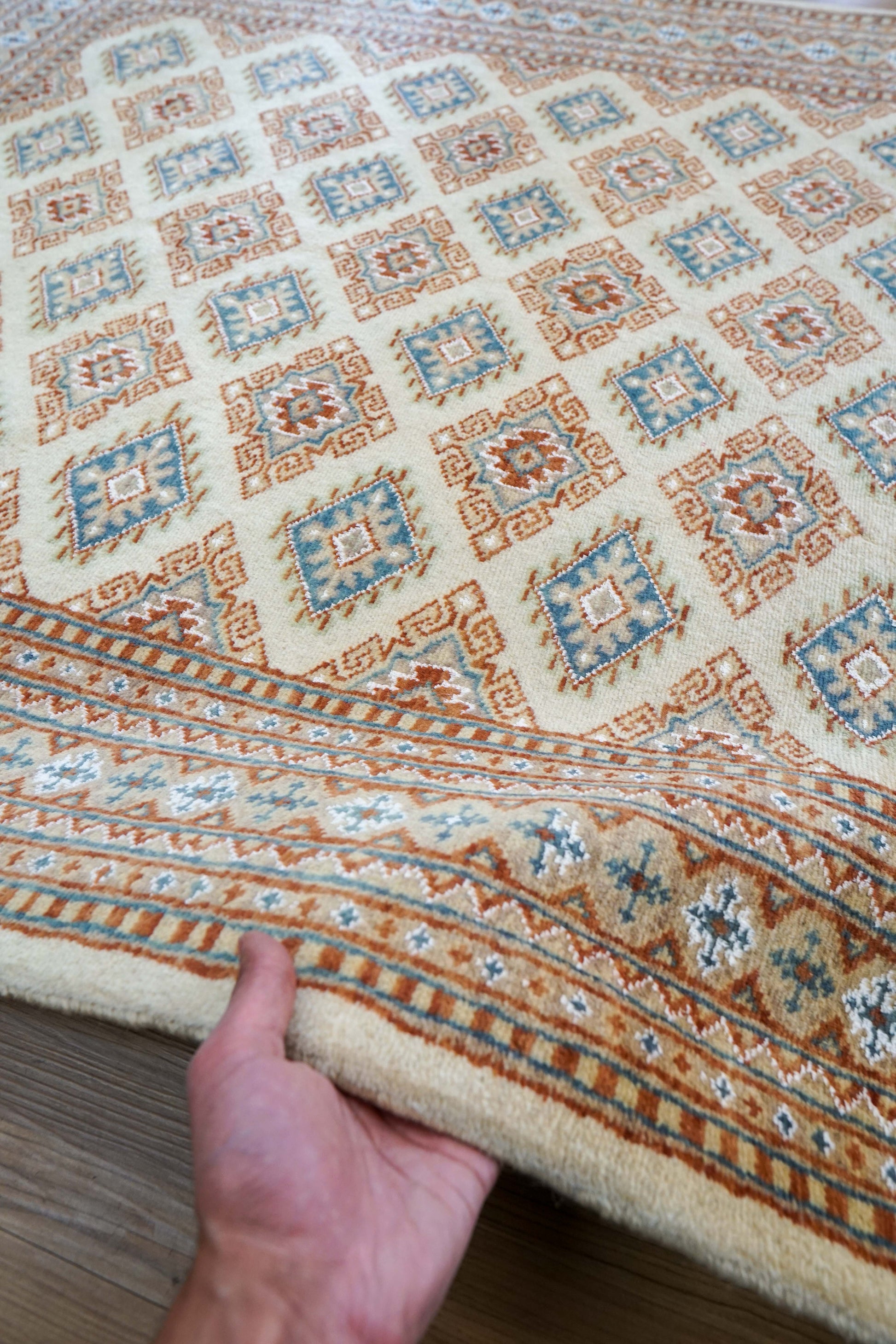 手織りパキスタン絨毯 184×128cm|9/16クオリティ・ベージュ×ブルー