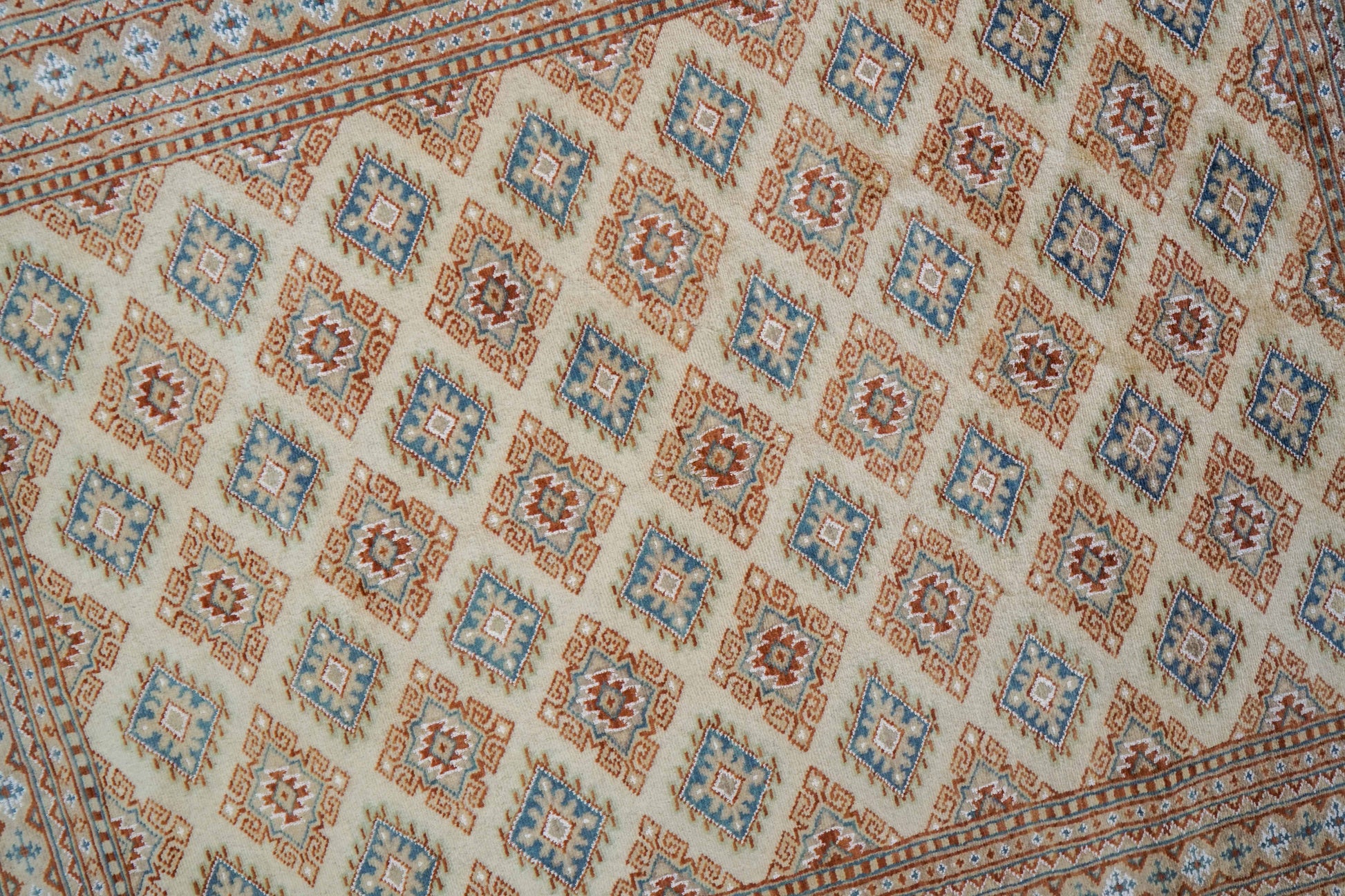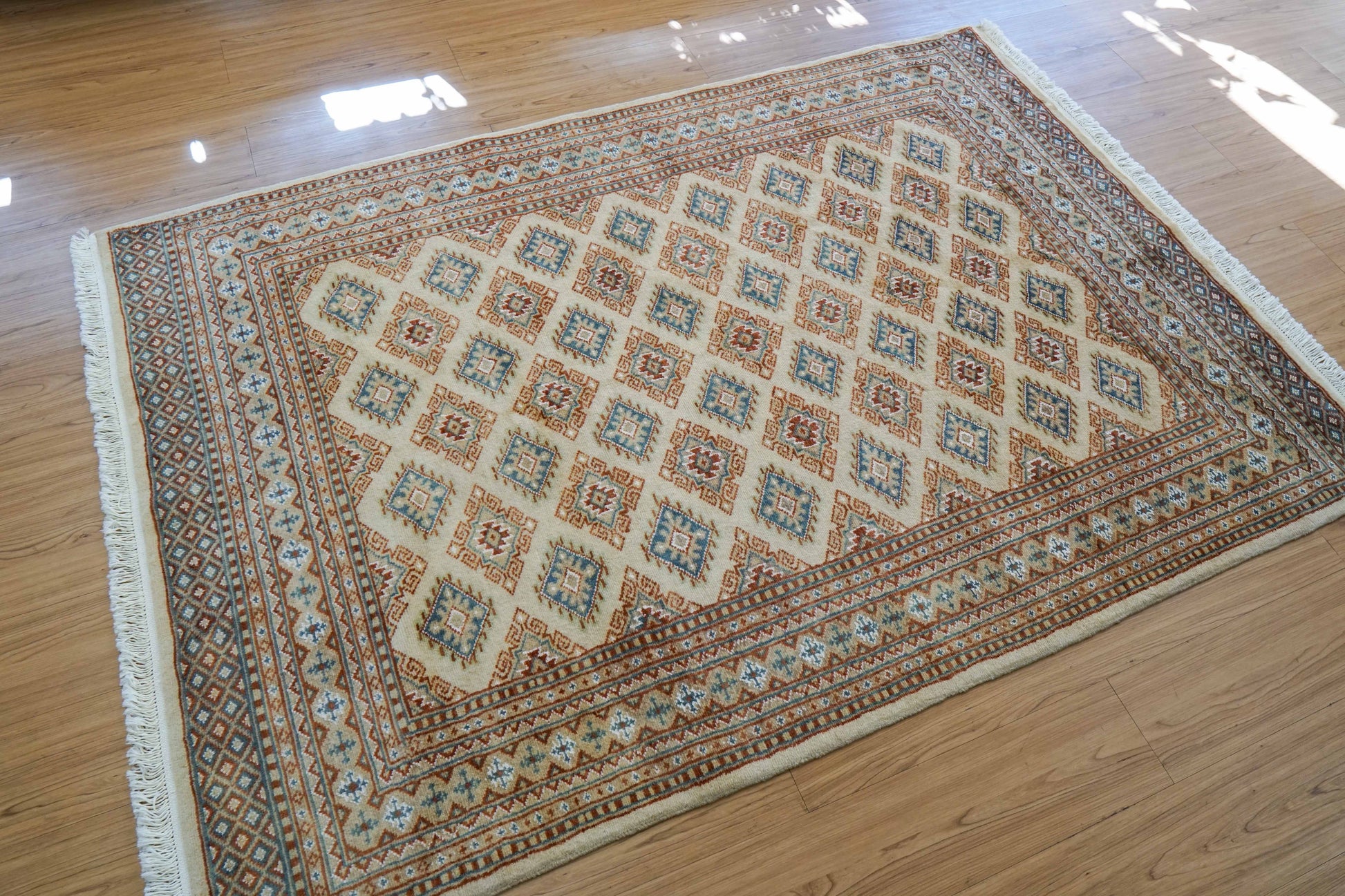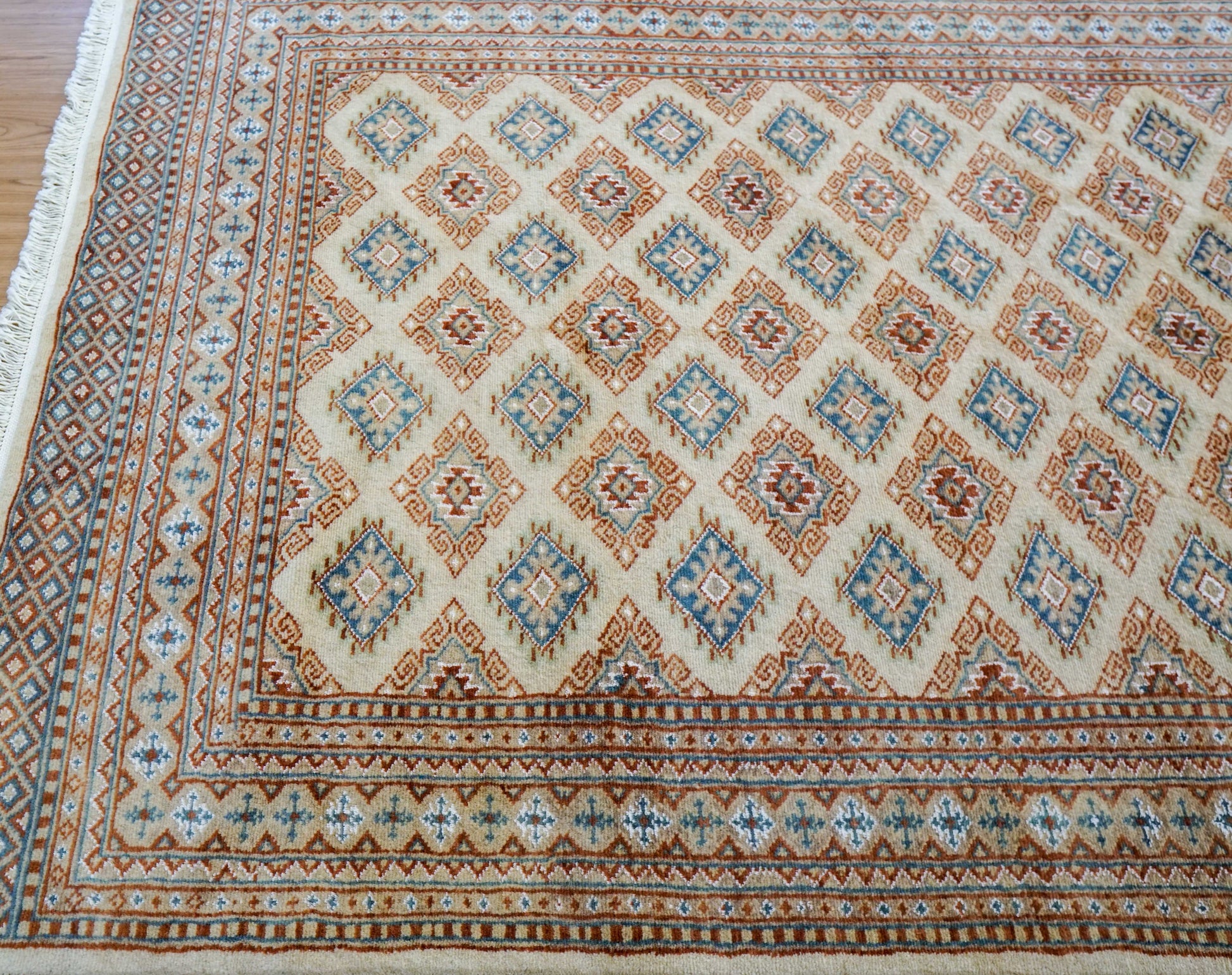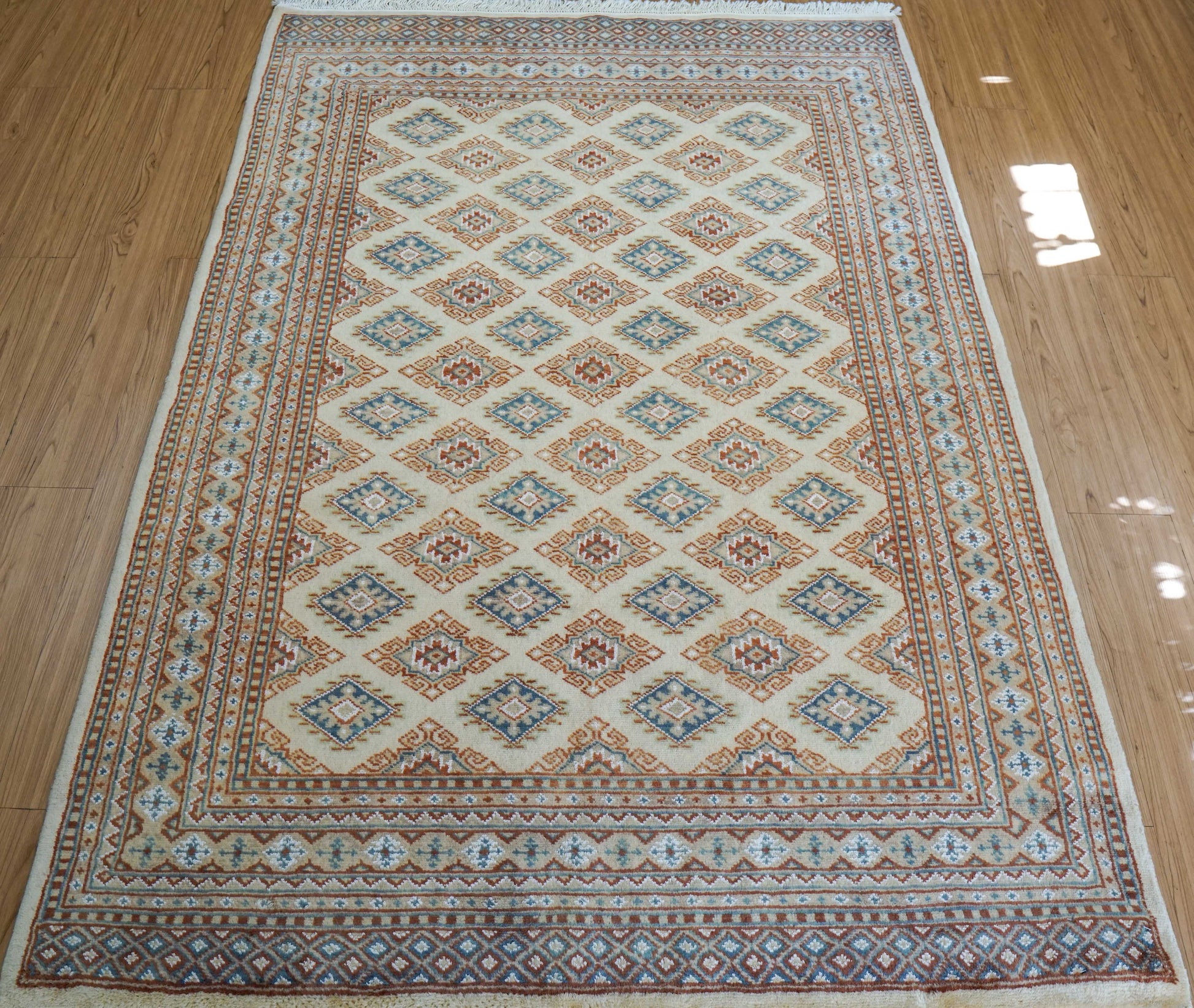 手織りパキスタン絨毯 184×128cm|9/16クオリティ・ベージュ×ブルー