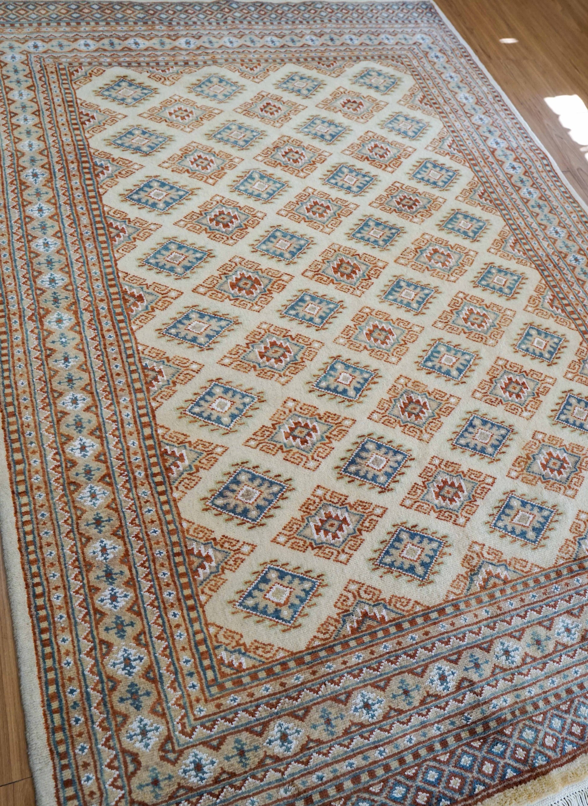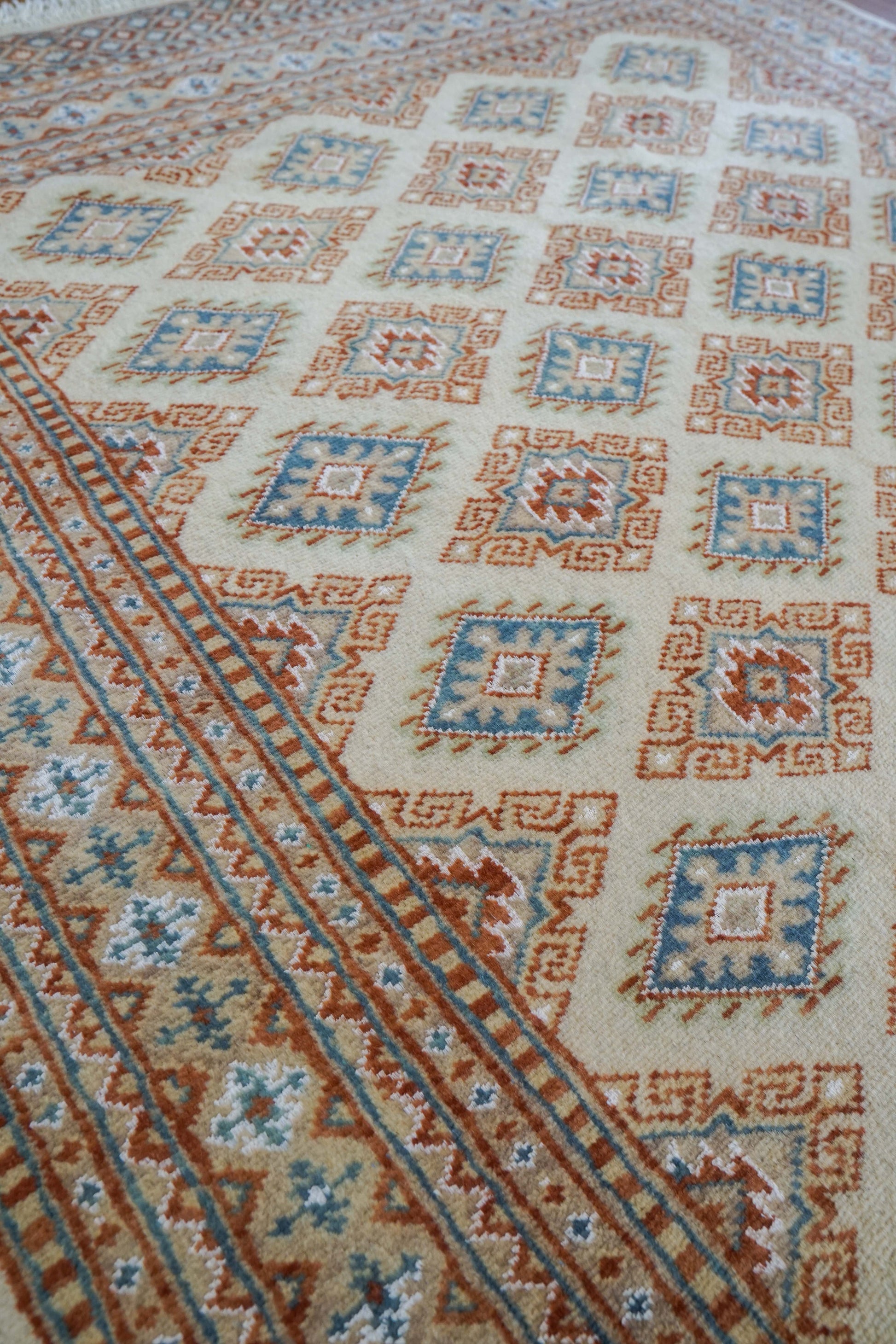 パキスタンで丁寧に織られた手織り絨毯です。