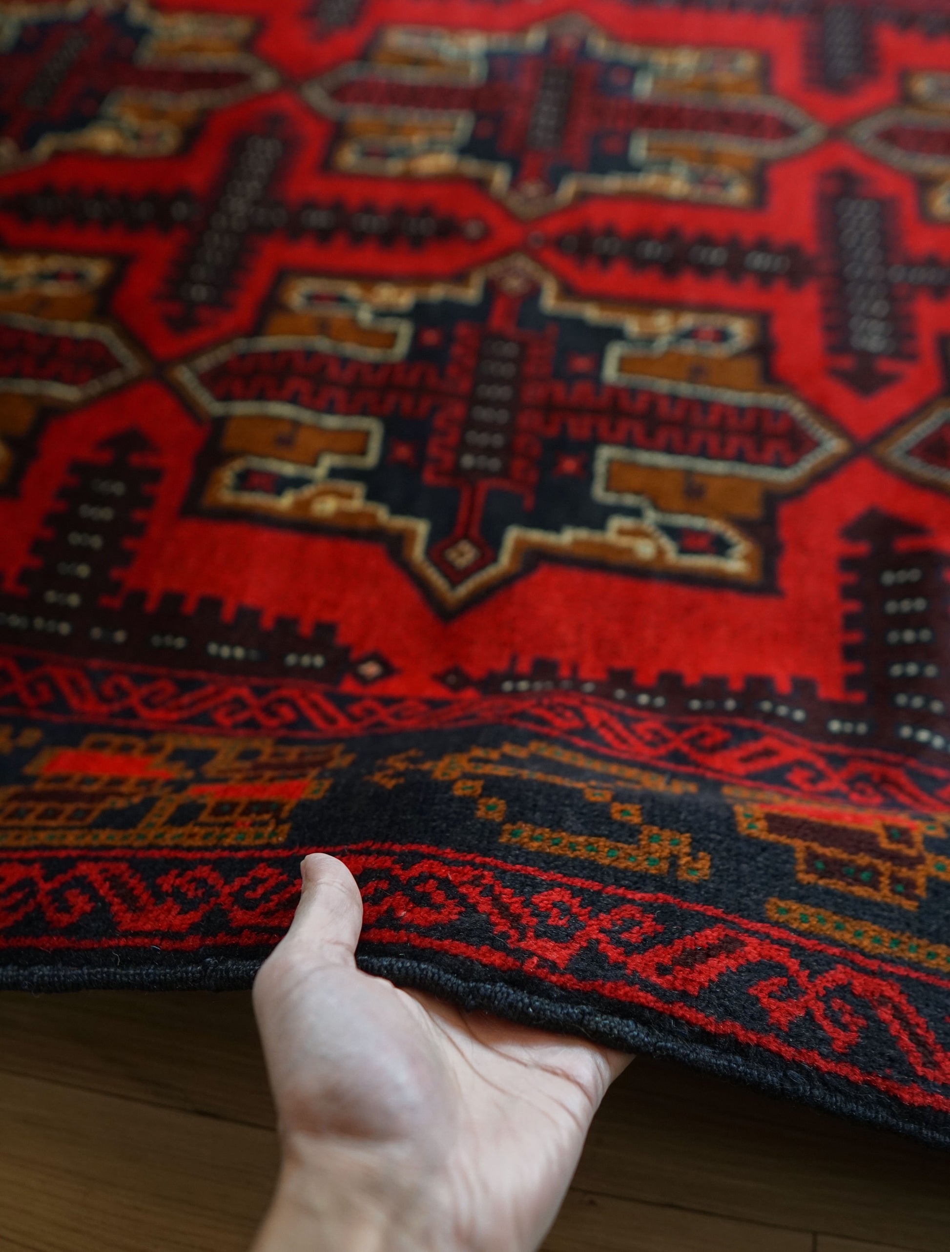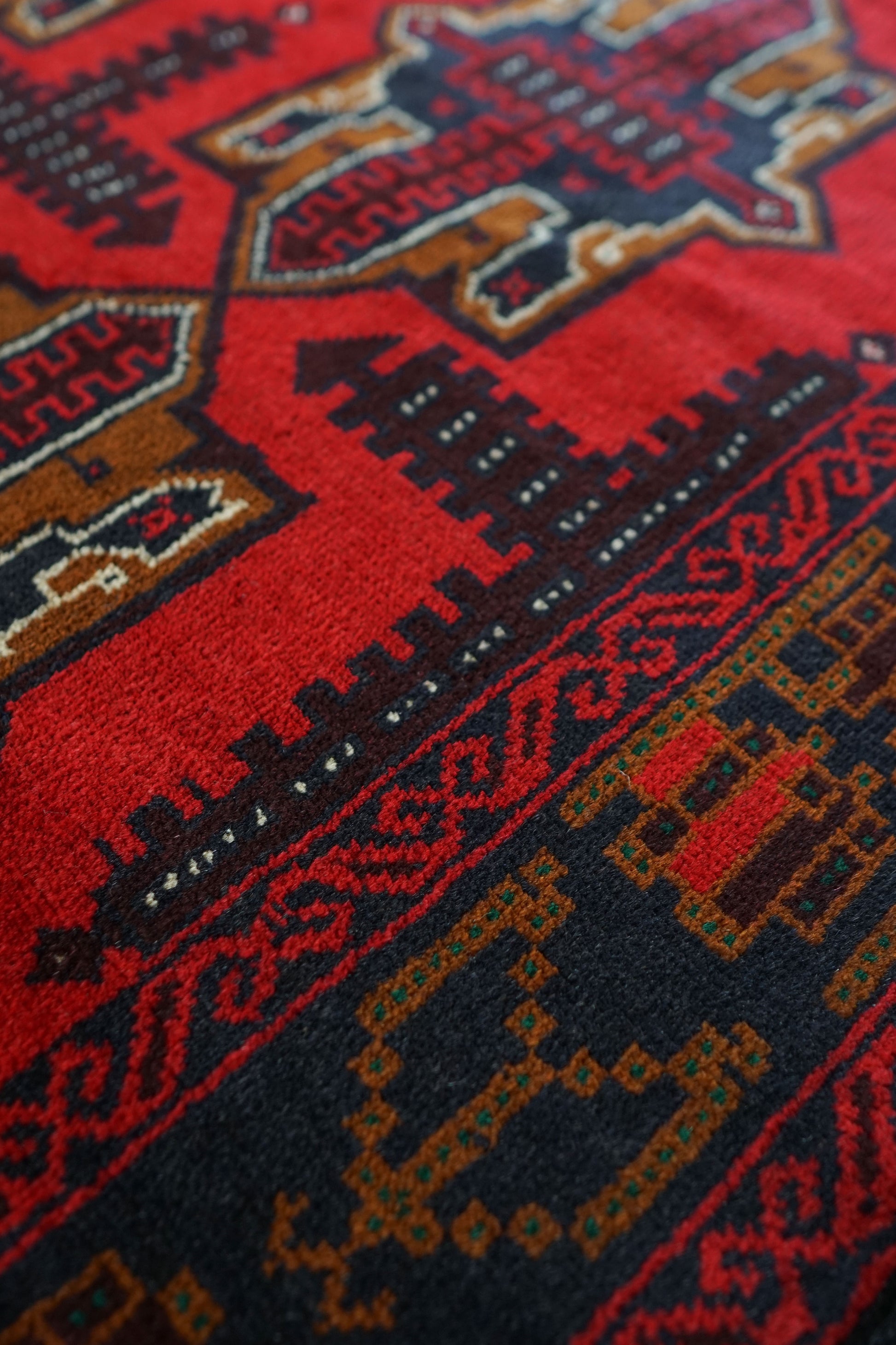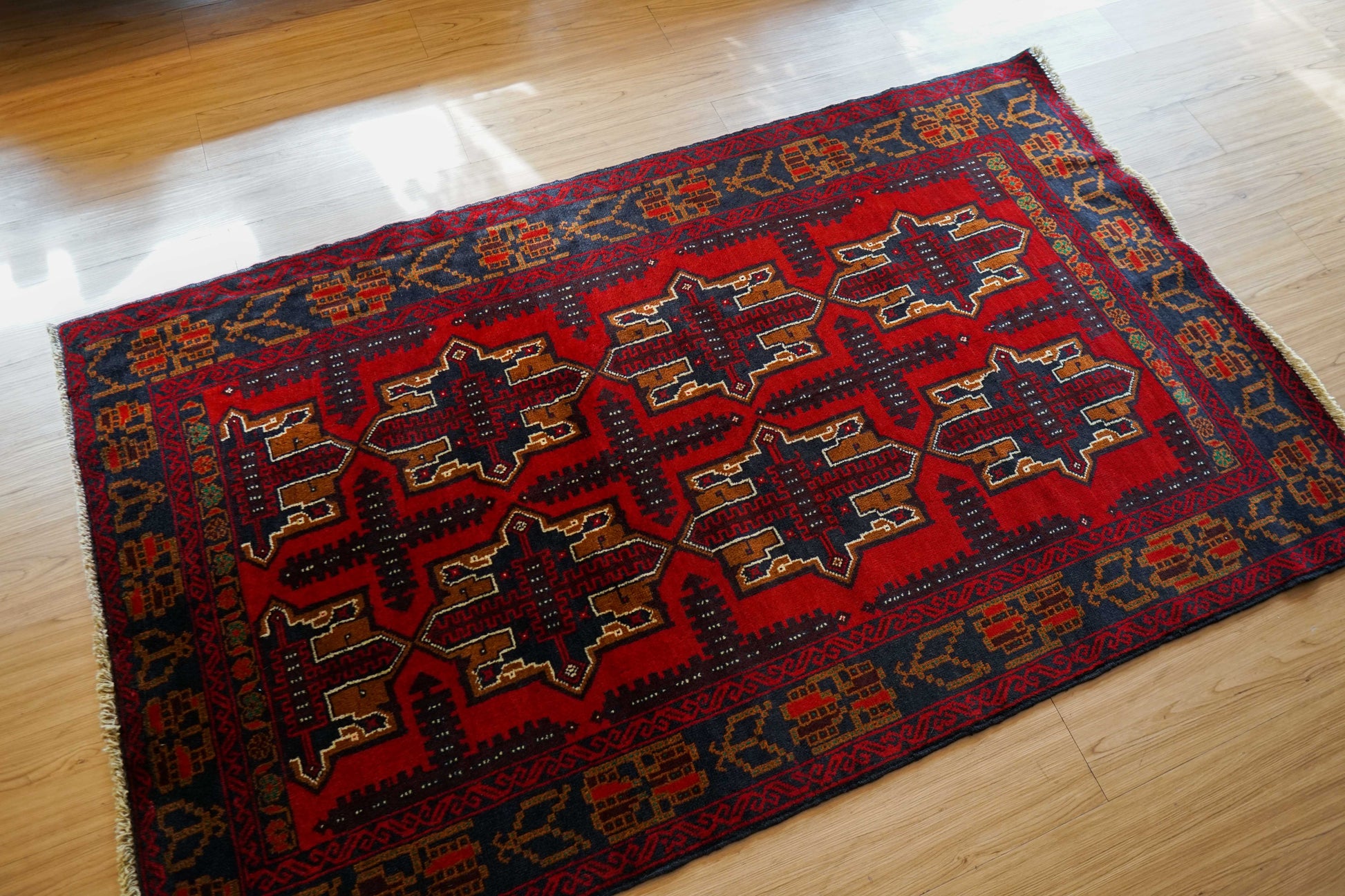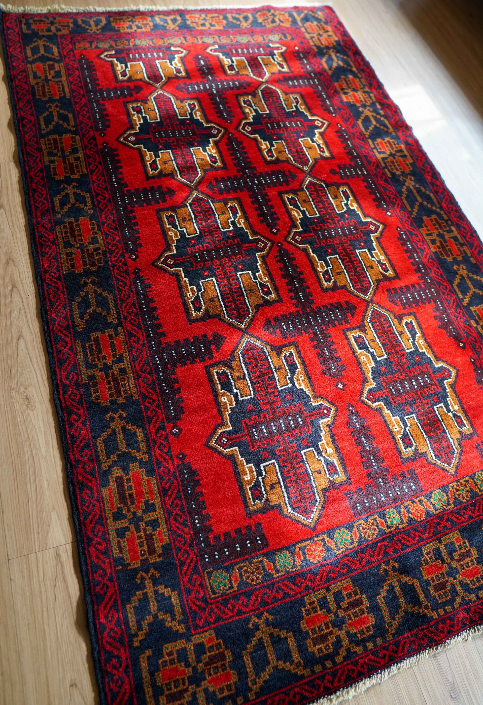 イランとアフガニスタンの国境付近に住むバルーチ族によって織られたトライバルラグです。
