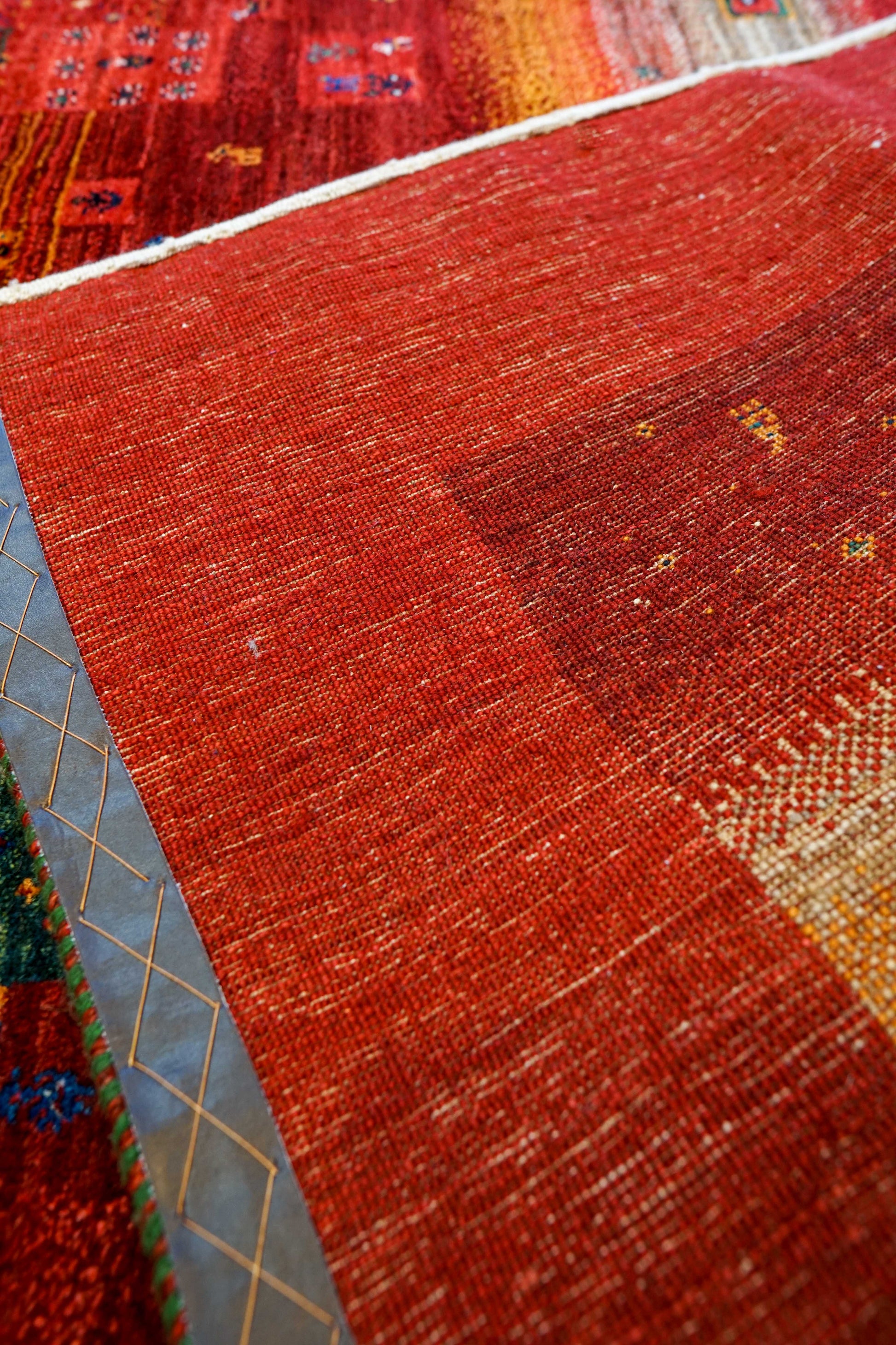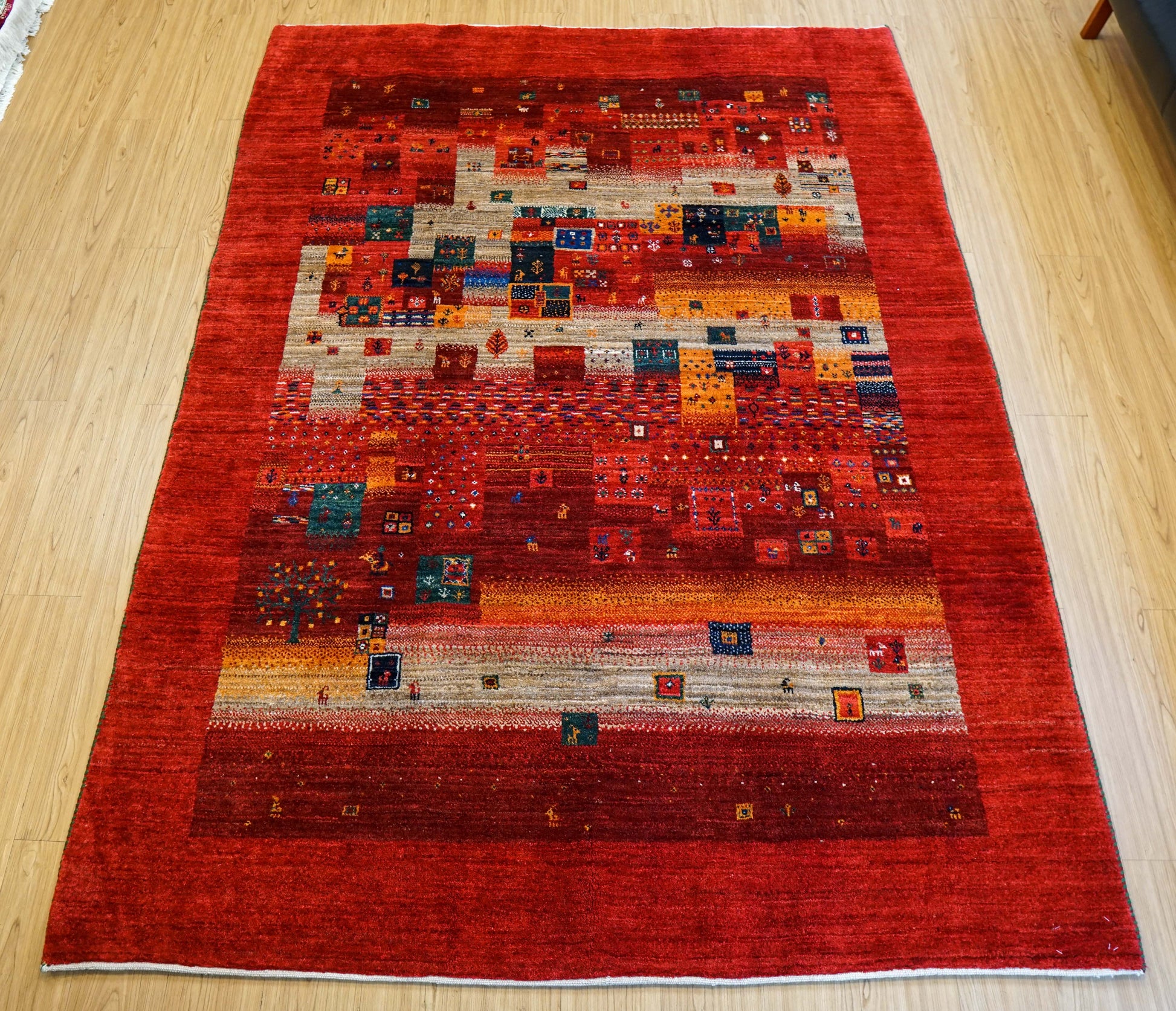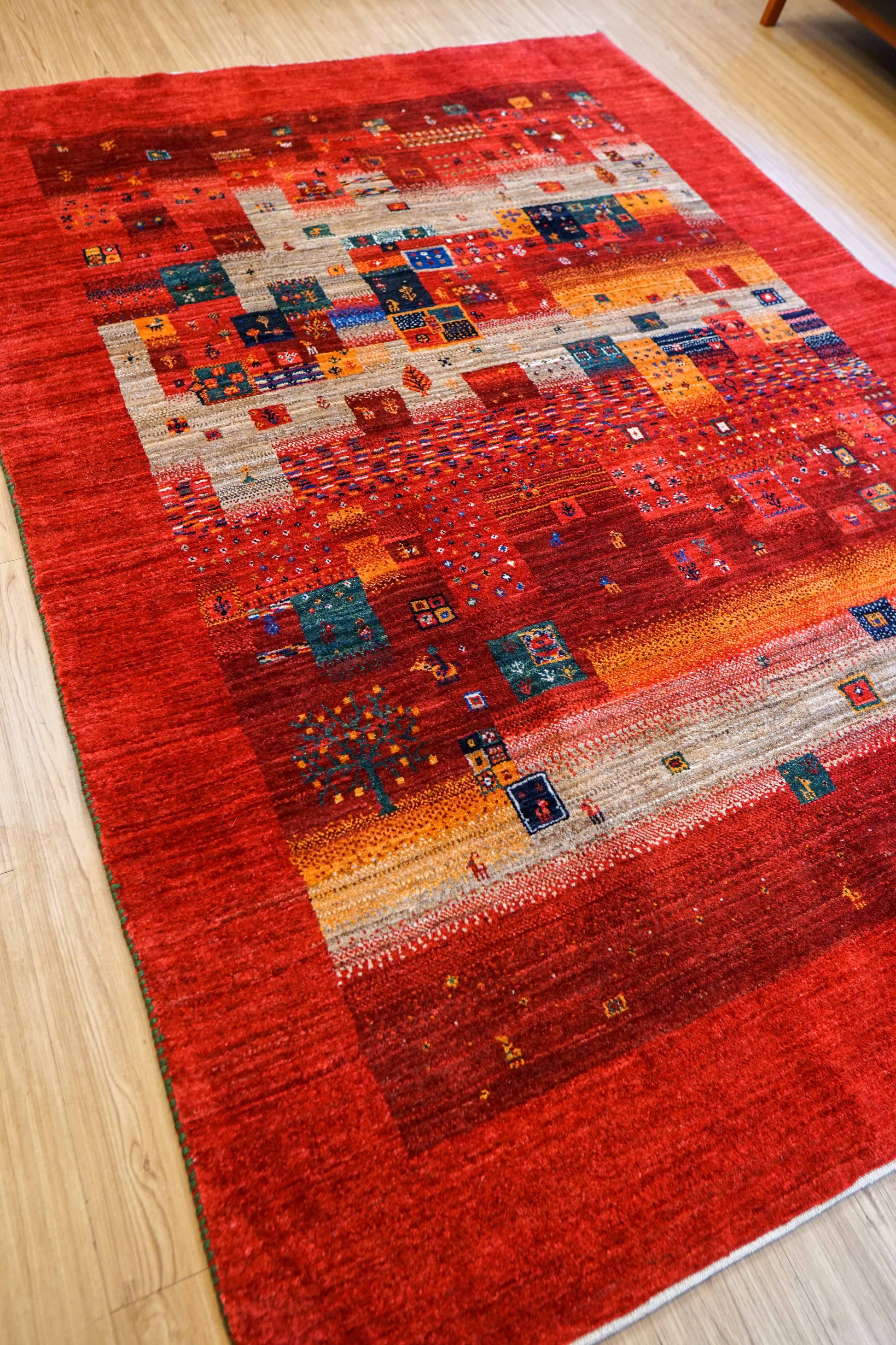 イラン シラーズ地方で遊牧民族によって手織りされたギャッベ。ギャッベの中でも織りが細かい『カシュクリ』と呼ばれるグレードの高いものです。結び目の密度が高いため織り上げるのに一般的なギャッベより時間を要しますが、柄は鮮明になり踏み心地も抜群です。