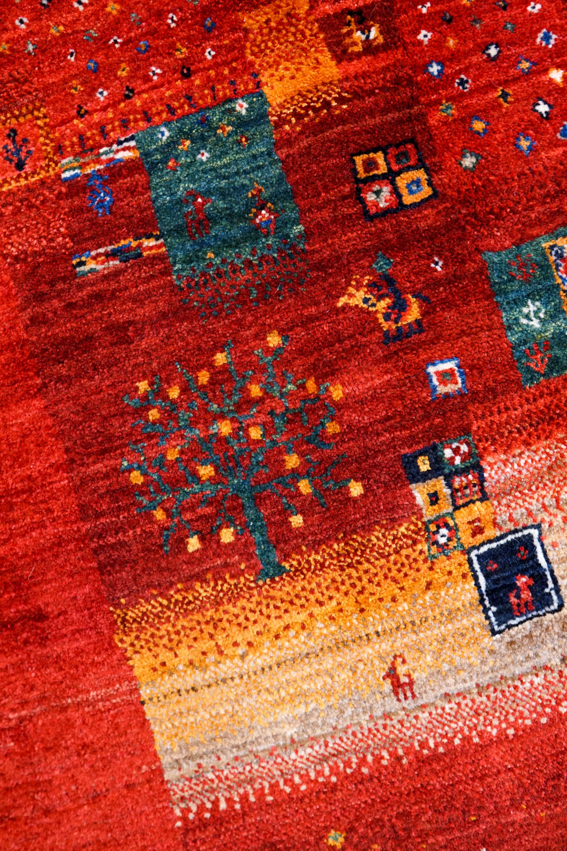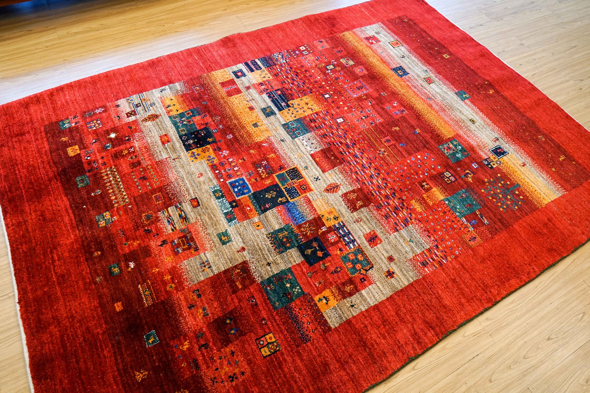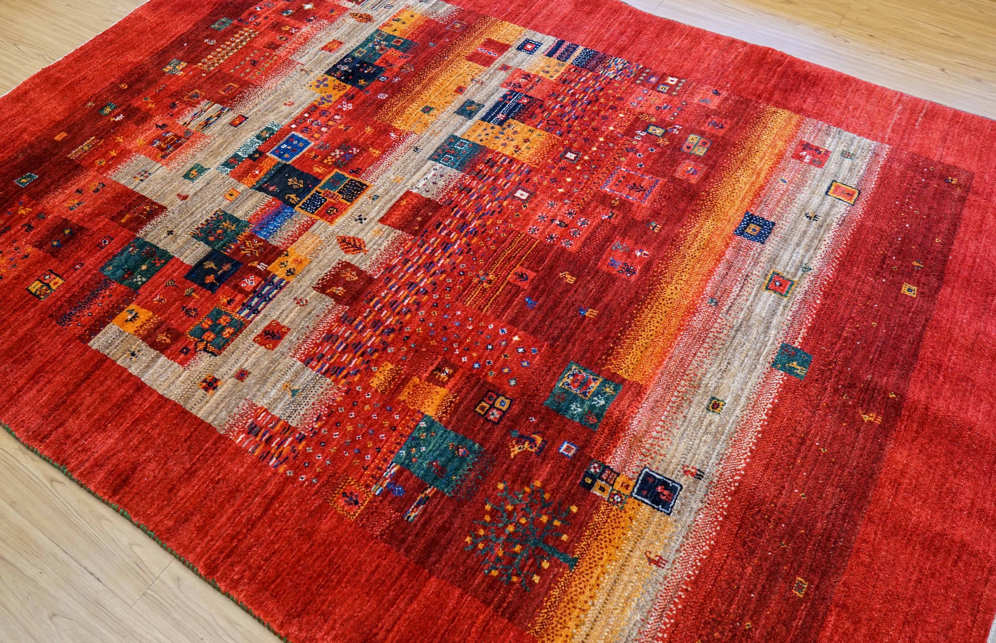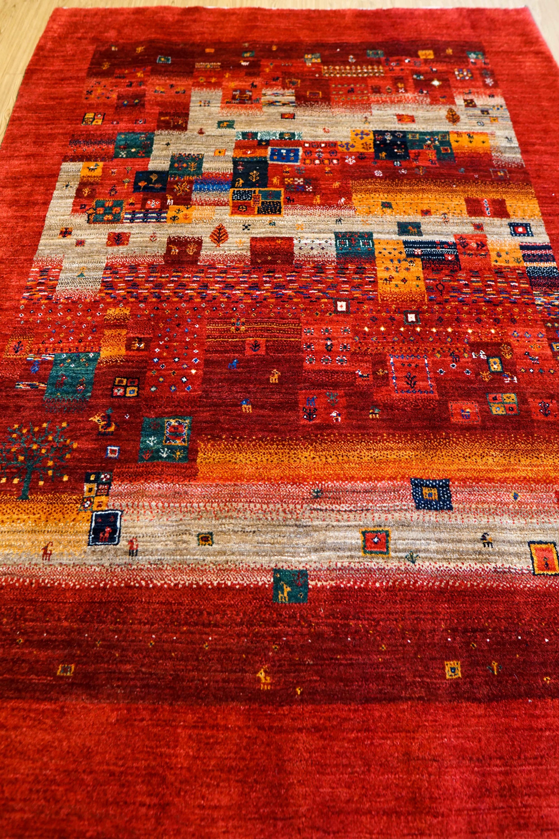 イラン シラーズ地方で遊牧民族によって手織りされたギャッベ。ギャッベの中でも織りが細かい『カシュクリ』と呼ばれるグレードの高いものです。結び目の密度が高いため織り上げるのに一般的なギャッベより時間を要しますが、柄は鮮明になり踏み心地も抜群です。