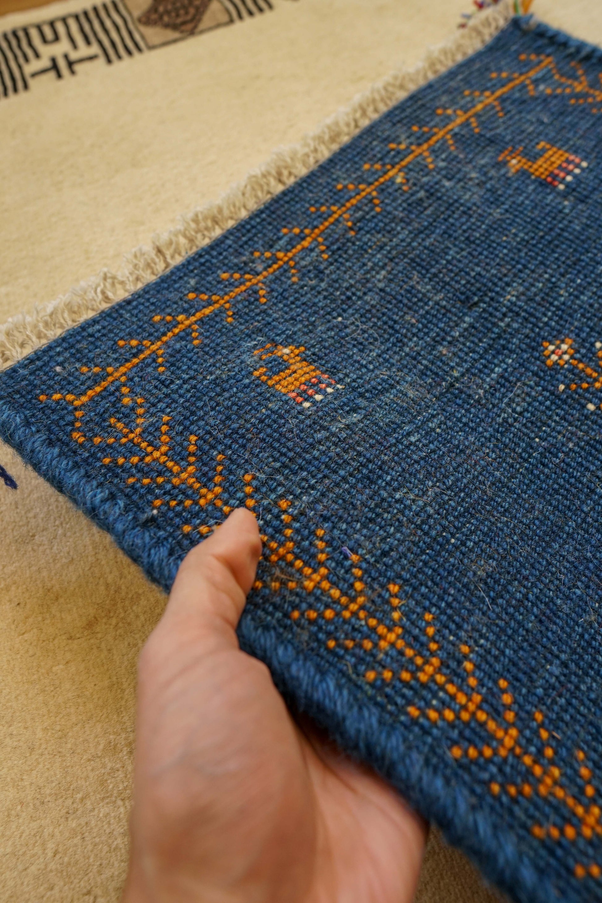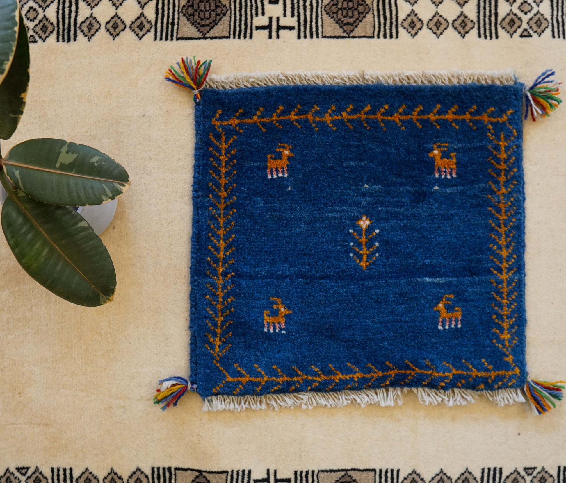 ペルシャ手織りギャッベ アマレ族 40×40cm|ウール100% ミニラグ・チェアマット ブルー