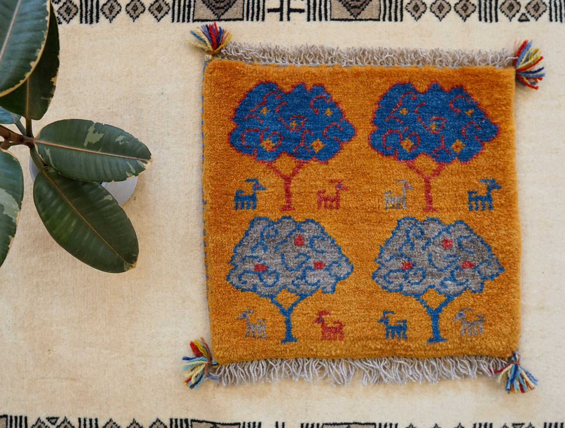 ペルシャ手織りギャッベ アマレ族 40×40cm|ウール100% ミニラグ・チェアマット 生命の木デザイン