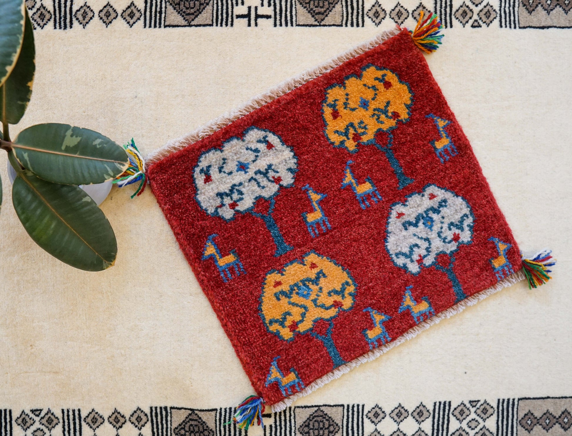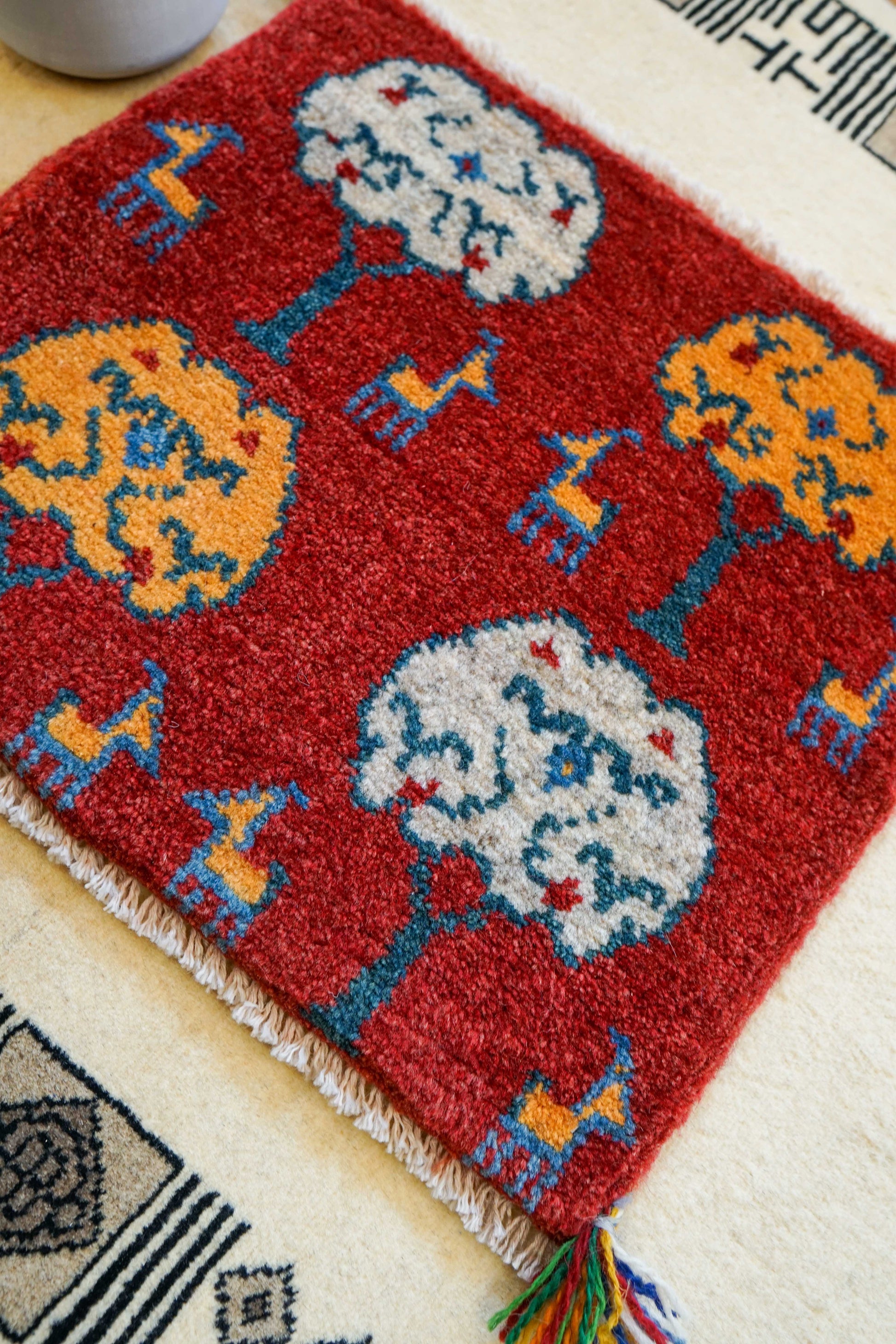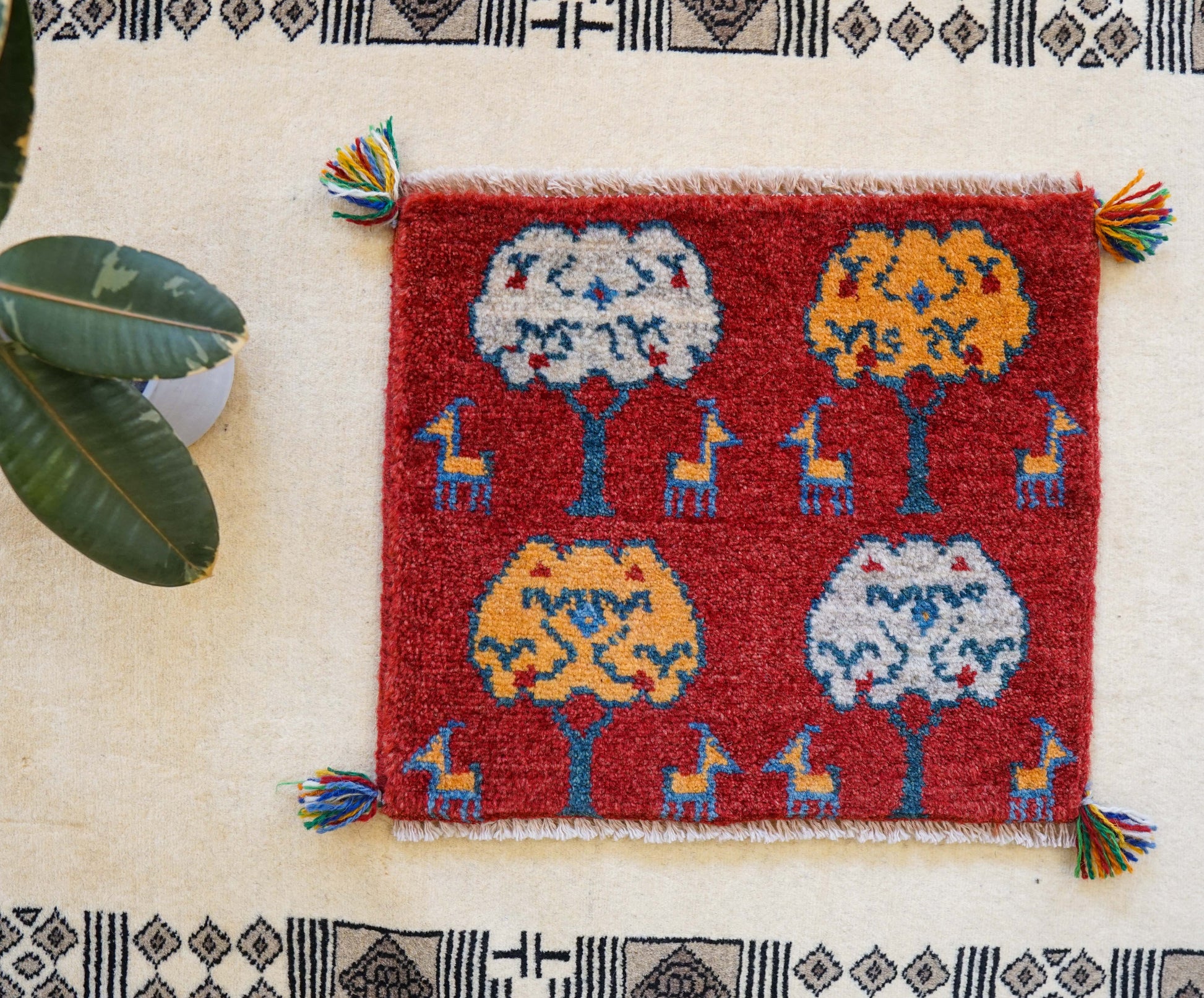ペルシャ手織りギャッベ アマレ族 40×40cm|ウール100% ミニラグ・チェアマット 生命の木デザイン