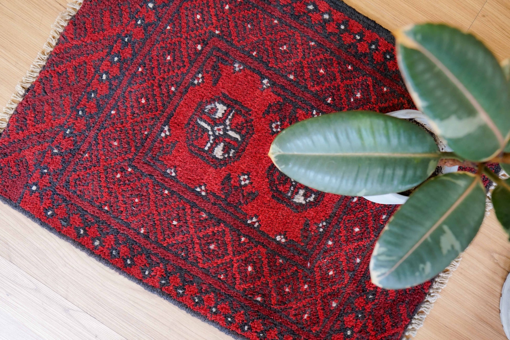 トルクメン 手織り絨毯 トライバルラグ ヴィンテージラグ 60×49cm